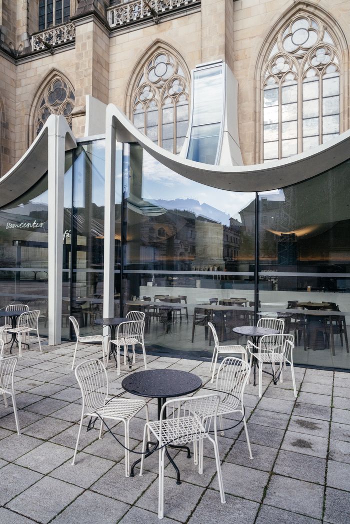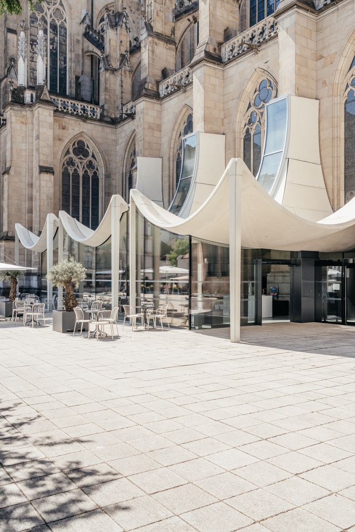 Die Bischof-Rudigier-Stiftung als Bauherrin formulierte daher eine spekulative, fast kühne Idee: Könnte man den Dom an dieser Seite öffnen – so, dass ein direkter Zugang zum Domschatz entsteht und zugleich zusätzliche, für die Beziehung zwischen Kirche und Stadtbevölkerung wichtige Funktionen integriert werden? Dommeister Clemens Pichler dachte dabei auch an ein kleines Café.