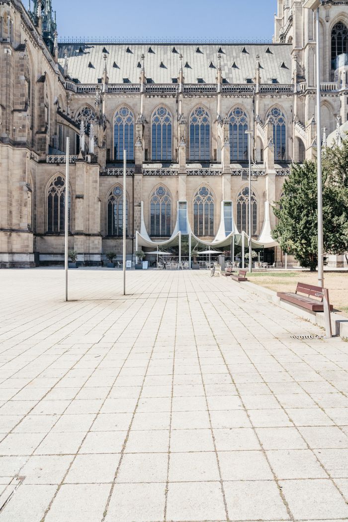 Der Anlass für diese Überlegung lag in der städtebaulichen Situation: Der Haupteingang der Kirche liegt im Norden, der große Domplatz, genutzt für kulturelle wie religiöse Ereignisse der Stadt, jedoch im Osten. Zu dieser Seite zeigte sich die neugotische Kirche bislang weitgehend verschlossen.