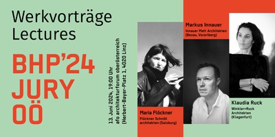 Am Vorabend der Juryfahrt geben die oberösterreichischen Nominierungsjuror:innen Maria Flöckner, Salzburg; Markus Innauer, Bezau; Klaudia Ruck, Klagenfurt in kurzen Werkvorträgen Einblicke in ihre Arbeit.