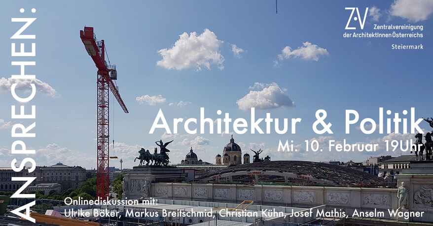 Steiermark, Online, Diskussion, AnsprechenARCHITEKTUR & POLITIK: Mittwoch 10.2.2021 um 19:00 Uhr