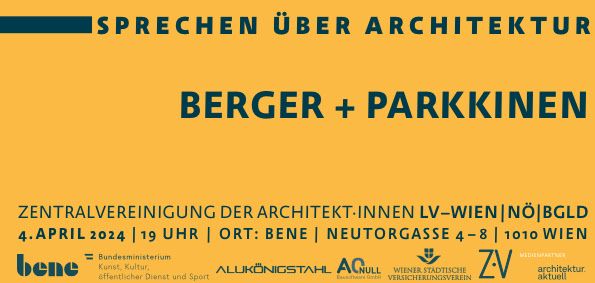 weiterlesen …Das international tätige Architekturbüro Berger+Parkkinen Architekten wurde 1995 von Alfred Berger und Tiina Parkkinen gegründet. Der im Gründungsjahr gewonnene Wettbewerb für die Nordischen Botschaften in Berlin dient als mächtiger Startschuss für ihre planerische Praxis, zahlreiche weitere Wettbewerbserfolge und Anerkennungen folgten. Inzwischen umfasst das Spektrum des Büros Städtebau und öffentliche Gebäude, sowie Wohn- und Geschäftsbauten. In den letzten Jahren wurden ihre Bauten u.a. mit dem Staatspreis für Architektur und Nachhaltigkeit sowie mit dem Architekturpreis Land Salzburg prämiert, das Paracelsus Bad und das Kurhaus in Salzburg (2021) sowie die Kapelle Terra Mater (2024) wurden für den Mies van der Rohe Preis nominiert.
