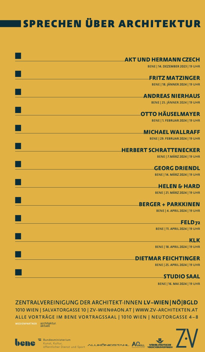 Seit 1967 lädt die ZV Wien, NÖ und Bgld. zur Vortragsreihe „Sprechen über Architektur“ ein.