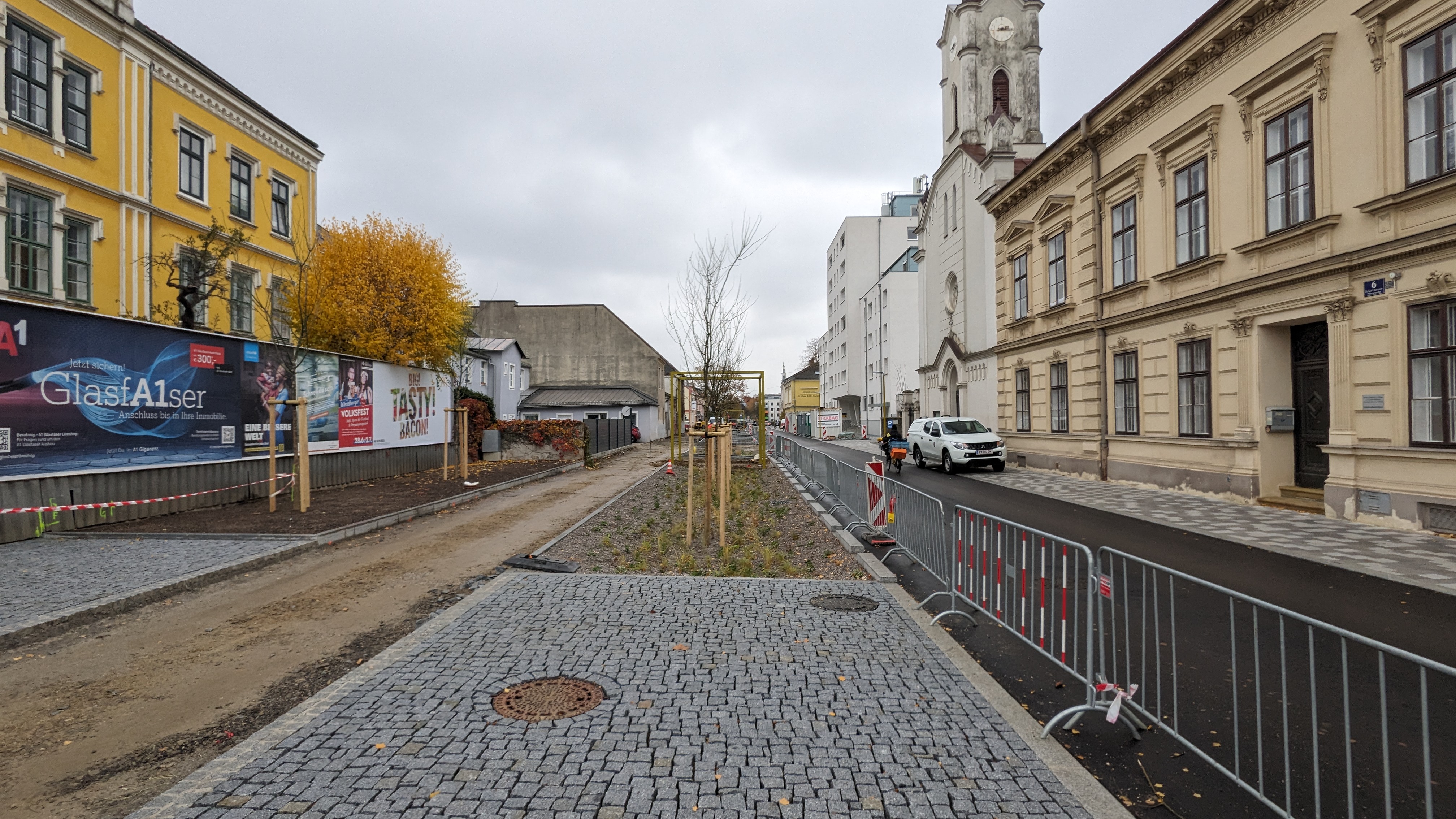 ORTE vor Ort - Baustellenvisite„Der Ursprung der heutigen Struktur des Promenadenringes liegt im Mittelalter. Dort wo er sich heute um die Altstadt legt, stand im 17. Jahrhundert die Stadtmauer mit ihrem Glacis als Freifläche vor der Stadtmauer. Sie bildeten die Grenze der Stadt und gaben somit den Rahmen für die Entwicklung im Inneren vor. Als die Mauer schließlich abgetragen wurde, entstand entlang des Glacis ein Ring um die Stadt, der zum Verweilen und Flanieren einlud. Große Baumalleen machten dem Namen ‚Promenadenring‘ alle Ehre. Heute soll genau dieser Charakter wieder hergestellt werden. Durch seine Weiterentwicklung weg von einem Verkehrsraum in erster Linie, hin zu einem klimafitten Verweil- und Flanierraum, soll das, was schonmal war, wieder in den Vordergrund gerückt werden.“ *)