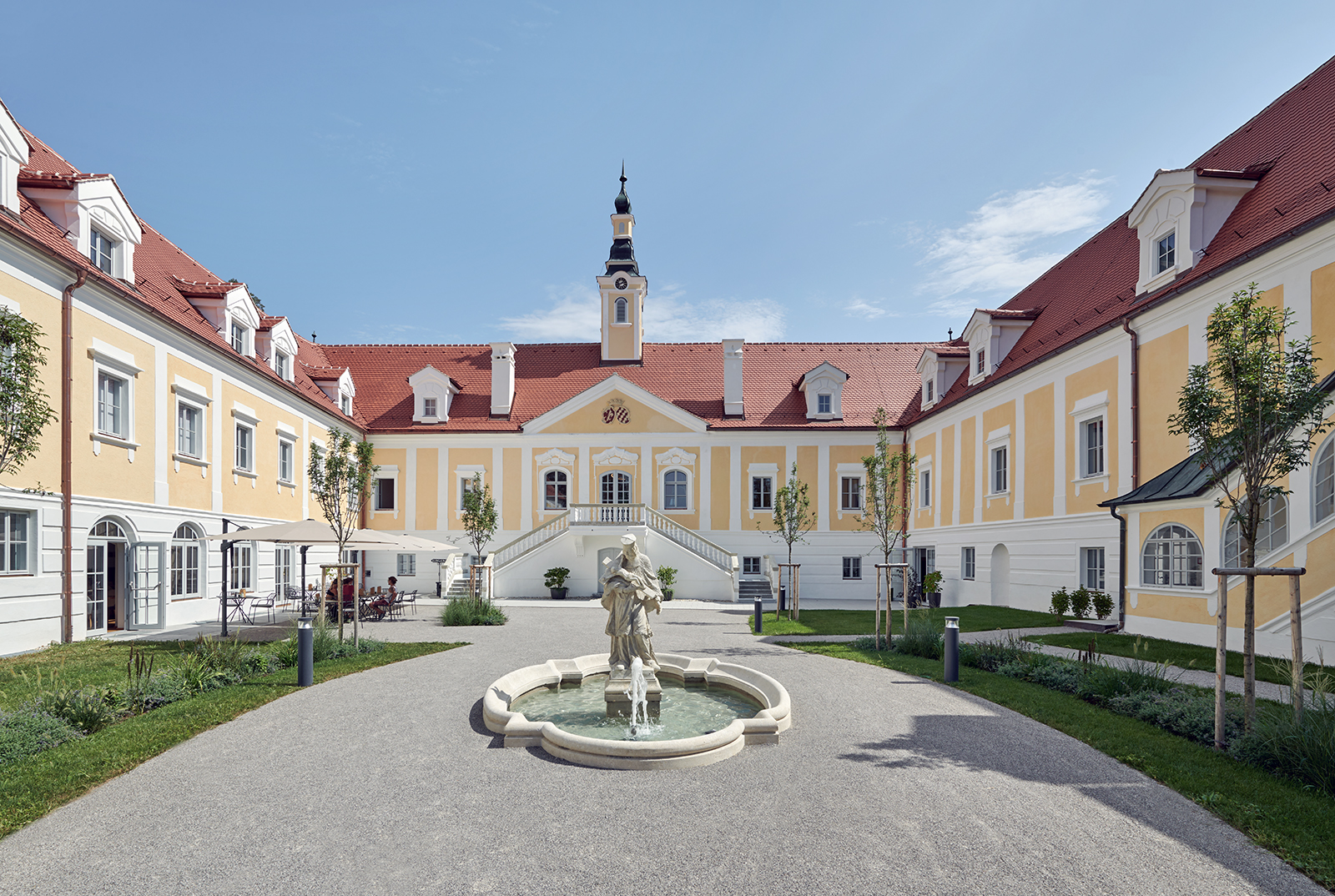 ORTE vor Ort - BauvisiteSchloss Haindorf liegt im gleichnamigen Ortsteil von Langenlois, ursprünglich inmitten der Kampauen. Im Jahr 1530 wurde die Existenz der sogenannten Feldmühle erstmals belegt, welche als Kernbau des späteren Schlosses gilt. Das L-förmige Freihaus aus der Renaissance wurde durch ein Mühlengebäude ergänzt, welches bis zu seinem Abbruch 1975 als ebenerdiger Trakt existierte. Um 1720 erfolgte der Ausbau zum Schloss in seiner heutigen Form mit den beiden Freitreppen etwa in der Mitte des Osttrakts und der Errichtung des Glockenturms.