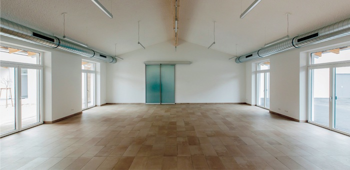 Häuser und Innenhöfe bieten eine Abfolge von öffentlichen und privaten Funktionen, von laut zu leise an. Einladend und für alle offen das erste Haus, hier findet Begegnung stattf; Begegnung der KlientInnen beim gemeinsamen Mittagessen, aber auch Begegnung mit Gästen und KundInnen, sei es beim Verkauf der eigenen Produkte, bei Veranstaltungen oder Festen. Der erste Hof hat die Funktion eines Gastgartens. Haus zwei und drei bieten den Werkgruppen der Industrie und Tischlergruppe Platz, der zwischengelagerte Innenhof kann für Pausen aber auch zum Arbeiten genutzt werden.