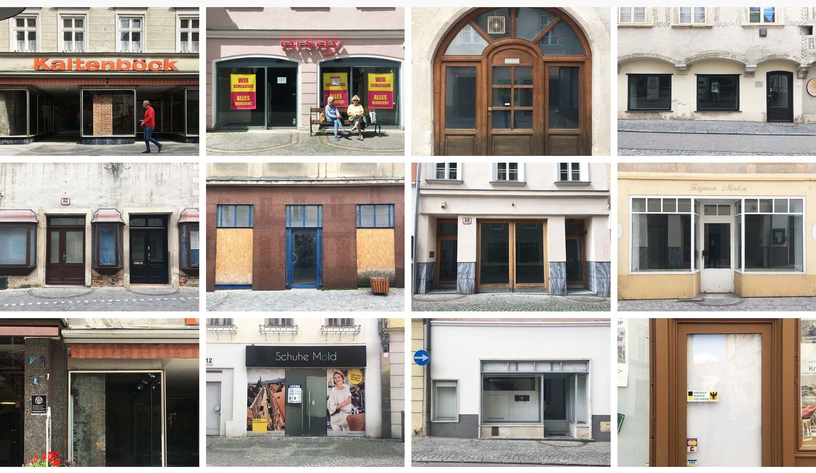 Anstatt eine streng wissenschaftsbasierte Innenstadtstudie zu erstellen, zeichnet Inès Lisser mittels einer Umfrage vor Ort ein sensibles Portrait dieser komplexen Thematik. Ihr Anliegen ist es, die Bevölkerung sowie die Verantwortlichen in der Stadt für leerstehende Erdgeschoßzonen im Bereich der Kremser Einkaufsstraße zu sensibilisieren, um zwischen ihnen allen in einer niederschwelligen Sprache eine Debatte in Gang zu setzen.
