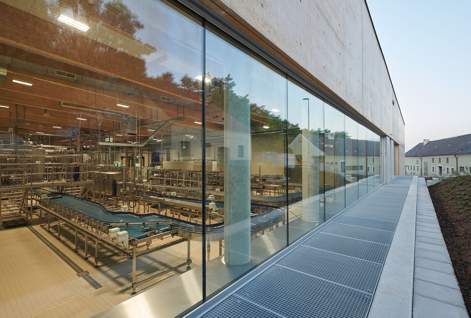 Bei der Betriebserweiterung vor etwa 60 Jahren wurde die Lössterrasse im aktuellen Planungsbereich abgetragen und bebaut. „Die Architektur reflektiert die Gestaltung in Form und Farbe der ursprünglichen Kulturlandschaft. Mit der lössfarbig vorgeblendeten Sichtbetonfassade und dem Gründach ist das Gebäude nun Teil dieser Landschaft“, so Krammer.