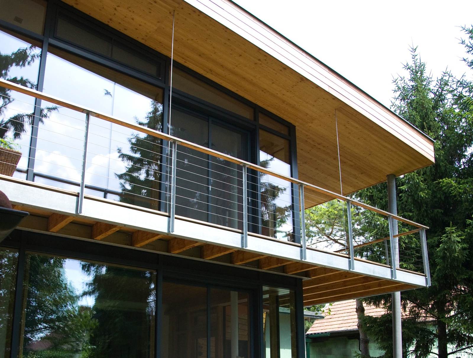 BesichtigungDieses auf den neuesten Stand der Behaglichkeit und Effizienz gebrachte Haus zeigt, dass das Ergebnis den Aufwand rechtfertigt: Am Beginn standen zwei Wünsche. Erstens eine Aufstockung zu realisieren, die nicht als solche erkennbar ist und zweitens sollte der Umbau in bewohntem Zustand erfolgen. Das Kippen des Obergeschoßes verschafft dem Gebäude innen und außen willkommene räumliche Eindrücke. So gelang es, die engen behördlichen Einschränkungen durch eine kreative Form zu lösen. Die Anordnung der Fensteröffnungen betont die Schrägstellung zusätzlich. Der Saunaerker und der kleine Balkon durchbrechen die homogene Holzfassade. Südseitig wird aus der Holzkiste ein Bilderrahmen, der das Haus zum Garten hin öffnet. In der Planungsphase entschieden sich die Bauleute für eine Qualitätssteigerung bis zum Niedrigenergiestandard. Die alte Eternitfassade musste weichen und das Vollziegelmauerwerk wurde mit einem Vollwärmeschutz versehen. Sämtliche Fenster im Erdgeschoß wurden durch Holz/Alu-Fenster mit Dreifachverglasung ersetzt. Die tragenden Mauern wurden bis OK Holzbalkendecke abgetragen, Estrich und Beschüttung auf der Decke entfernt. Nach Fertigstellung des Dachgeschoßes in Holzriegelbauweise wurde die ehemalige Außenwand gartenseitig abgebrochen und eine Treppe eingebaut. Der gesamte Umbau dauerte von Oktober 2007 bis Juli 2008 mit einem sehr hohen Anteil an Eigenleistungen.