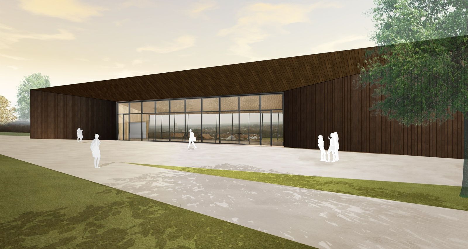 Der Entwurf des Eingangsgebäudes wurde im Rahmen eines Wettbewerbs ermittelt und stammt von ah3 architekten in Horn.