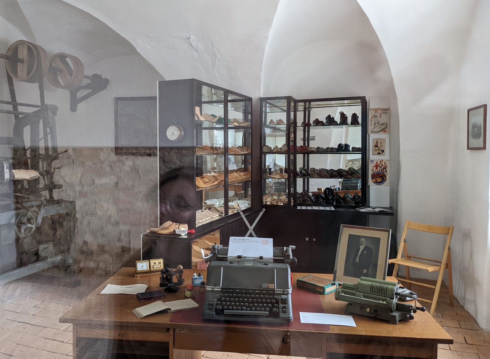 Im Erdgeschoss des Bestands beherbergt nun ein Raum das Heimatmuseum, wo alte Maschinen der Holzleistenproduktion ausgestellt sind und an die ursprüngliche Nutzung des Gebäudes erinnern.
