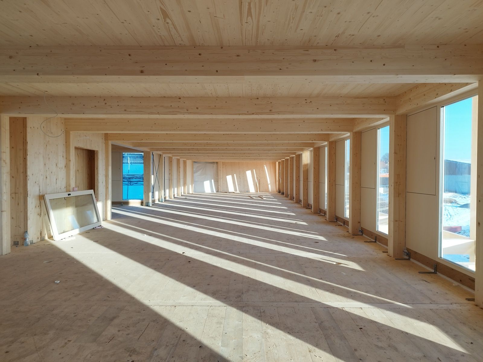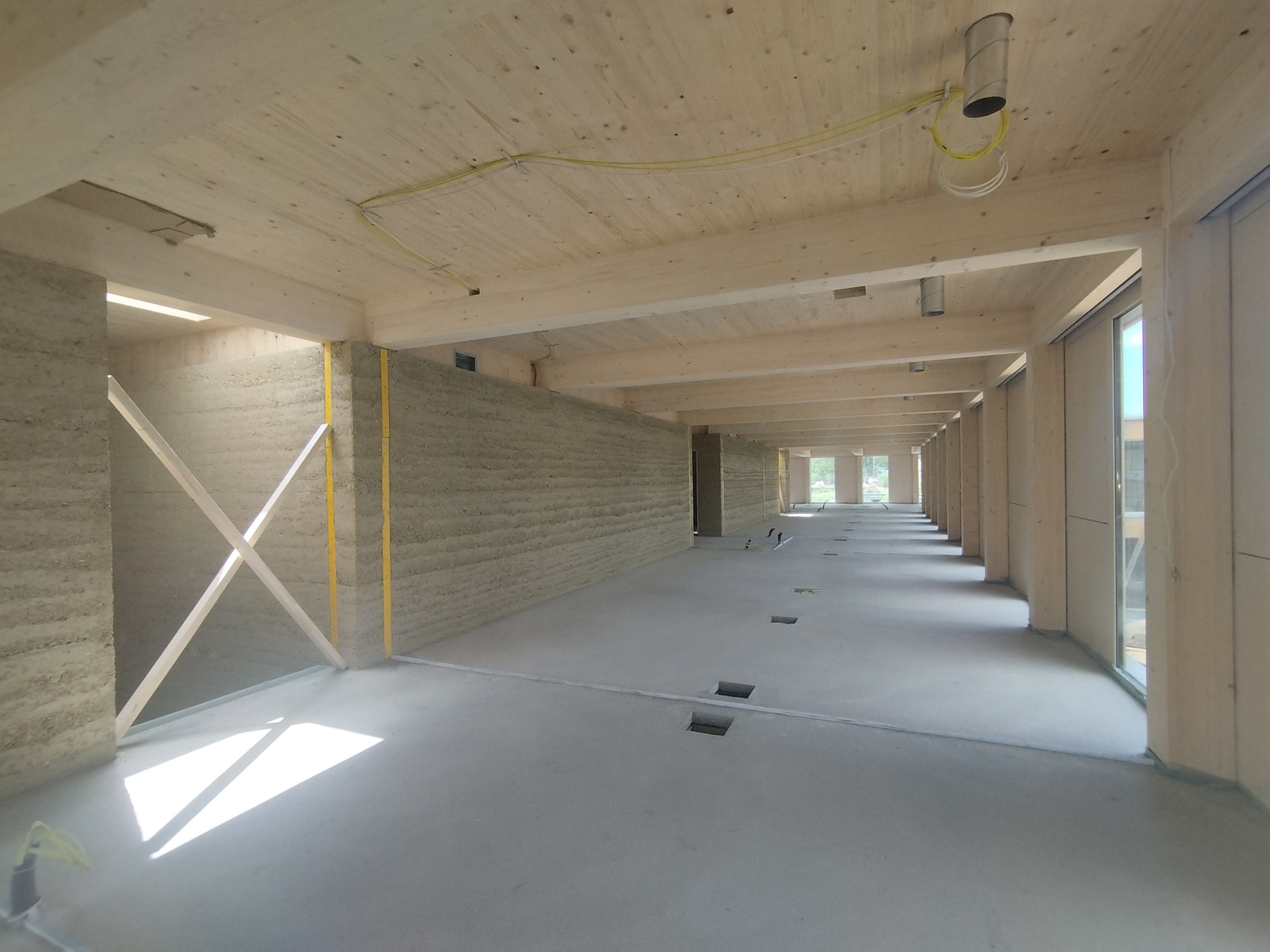 Der Neubau besteht aus einem klar gerasterten Holzbau, der maximale Flexibilität für zukünftige Nutzungsvarianten offenhält und einem massiven Lehmkern, der die Erschließungs- und Servicezone aufnimmt und durch ein innovatives Energiespeicherkonzept das Raumklima reguliert. (Text: Juri Troy)
